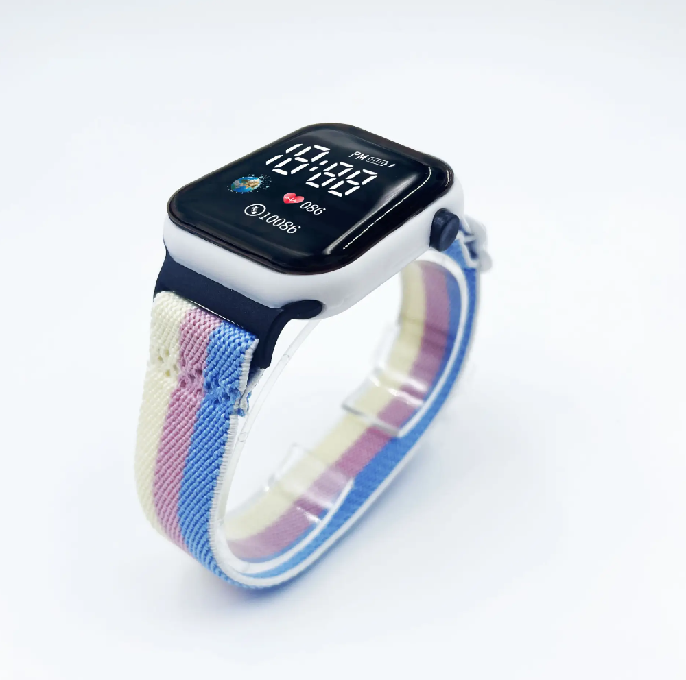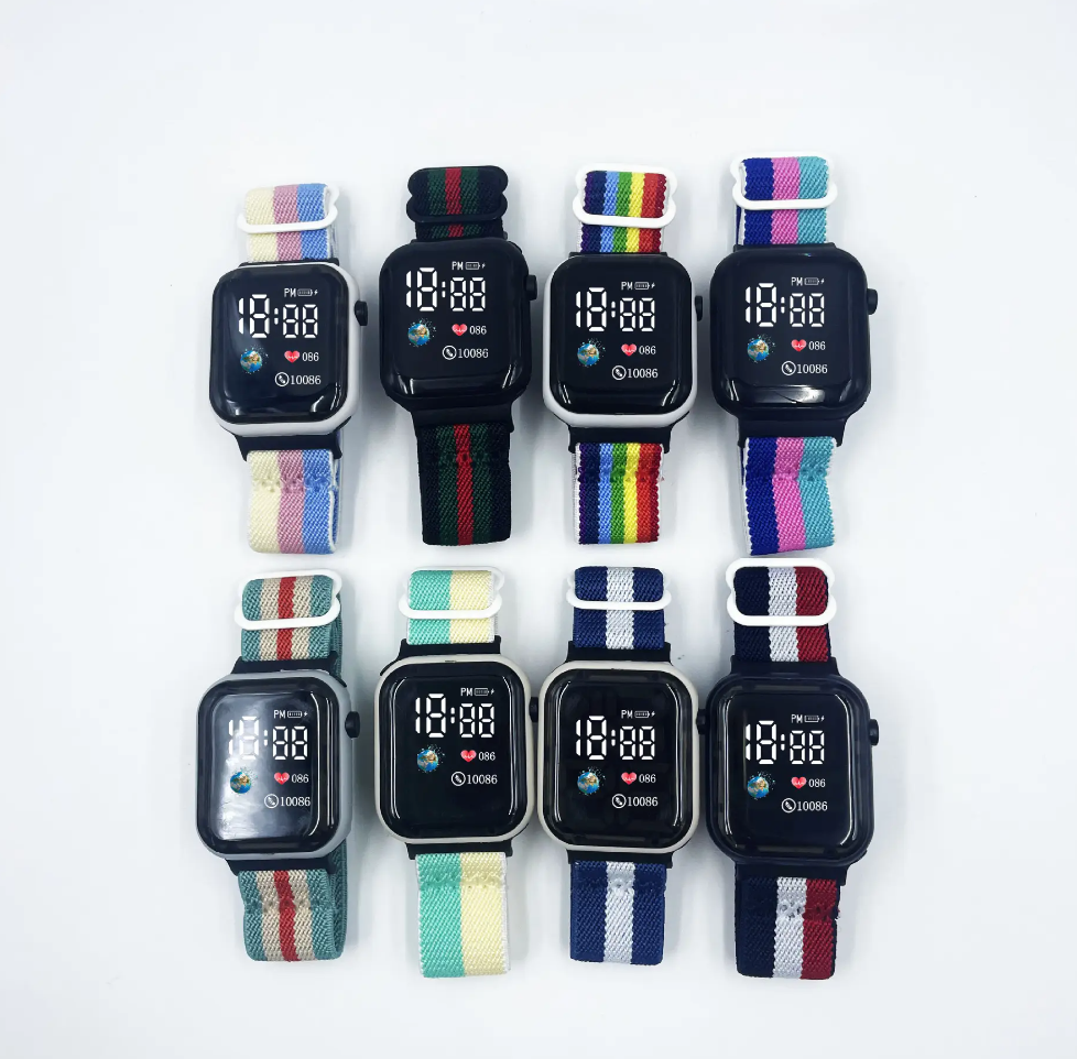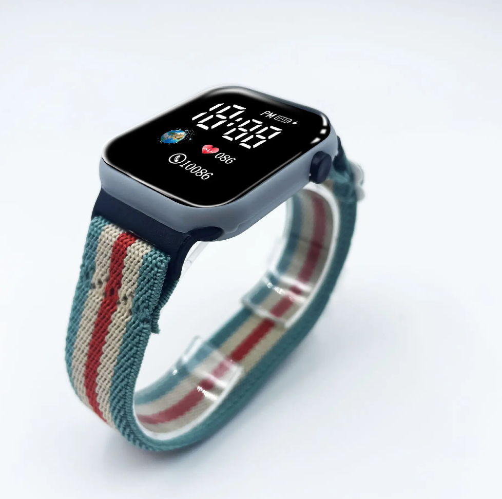 Trendy 2024 Sports Digital Watch – Elastic Nylon Band, Fashionable & Durable Electronic Wristwatch